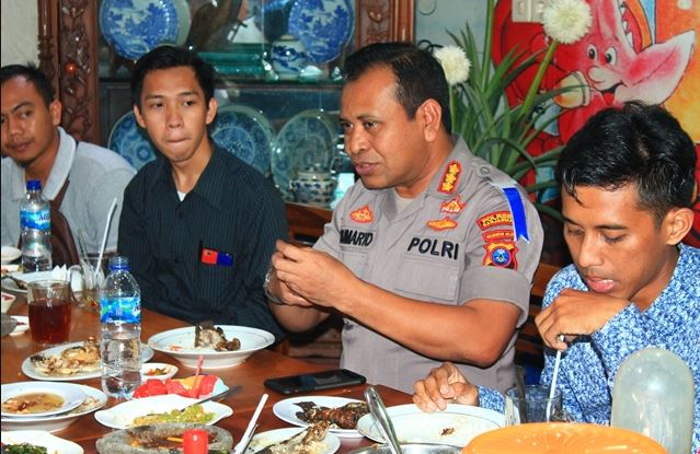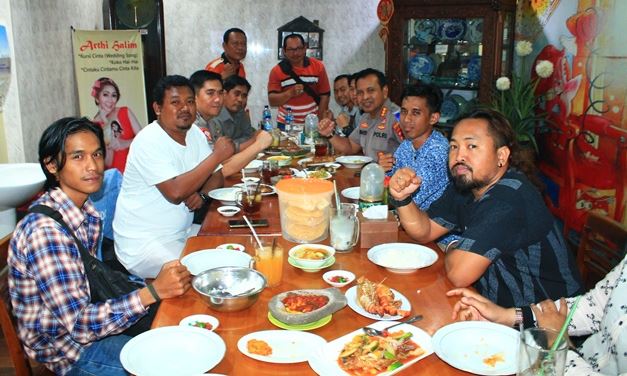 BANJARMASIN, KALIMANTANLIVE.COM – Kapolresta Banjarmasin, Kombes Pol Sumarto kembali mengajak wartawan makan siang bersama dalam rangka menjaga sinergitas dengan awak media, Selasa (3/12/2019).