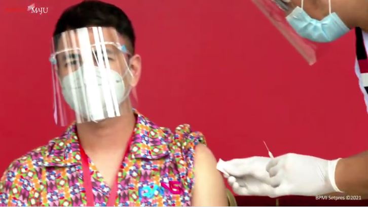 Raffi Ahmad menjadi perwakilan anak muda di program vaksinasi tahap pertama bersama Presiden Joko Widodo di Istana Kepresidenan, Rabu, 13 Januari 2021.