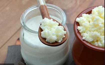 Kefir merupakan minuman fermentasi susu sapi atau kambing dan biji kefir.