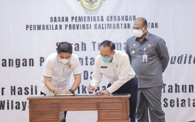 Acara serah terima LKPD 2020 dan IHPD 2020 yang berlangsung di Aula Kantor BPK RI di Kota Banjarbaru.