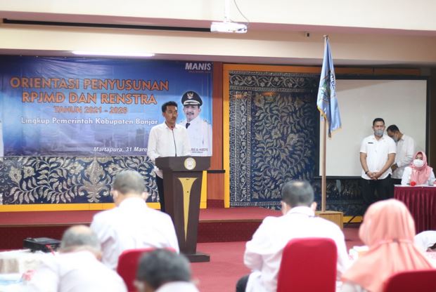 Pemkab Banjar melalui Badan Perencanaan Pembangunan Penelitian dan Pengembangan (Bapedda Litbang) melaksanakan orientasi penyusunan Rencana Pembangunan Jangka Menengah Daerah (RPJMD) dan Rencana Strategis (Renstra) tahun 2021-2026 bagi perangkat daerah, di Mahligai Sultan Adam Martapura, Rabu (31/3/2021) pagi.