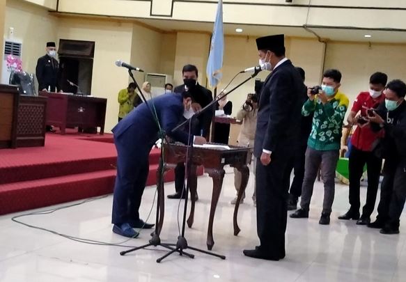 MARTAPURA, Kalimantanlive.com – Warhamni dari Partai Nasdem resmi menjadi anggota DPRD Kabupaten Banjar, usai dilantik di Martapura, Kamis (29/4/2021). menggantikan M Solikin yang meninggal dunia.