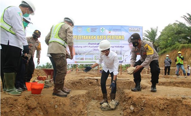 Peletakan batu pertama pembangun gedung baru untuk Unit Pelaksana Teknis (UPT) Puskesmas di Sambung Makmur dilakukan oleh Bupati Banjar H Saidi Mansyur pada Selasa (14/7/2021).
