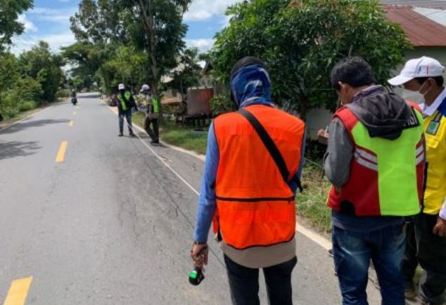 Inventarisir dan pengukuran jalan yang rusak dimulai ruas jalan jalur Kecamatan Amuntai Utara, lampu merah simpang 4 Pelampitan Hilir, Danau Ceramin sampai Pantai Hambawang, Kabupaten Hulu Sungai Tengah (HST).