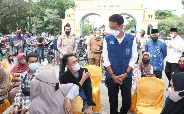Saidi Mansyur menyambangi tenda tempat pemberian vaksin dan bertegur sapa dengan masyarakat penerima vaksin sambil berbincang-bincang.
