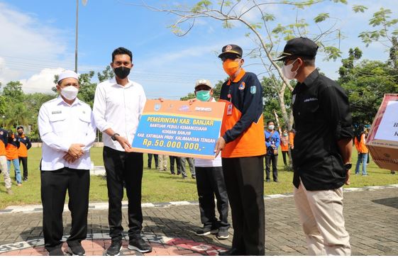 Selain sembako dan bahan logistik lainnya, Pemkab Banjar juga memberikan uang tunai sebesar Rp 50 Juta untuk Pemkab Katingan, Kalteng.