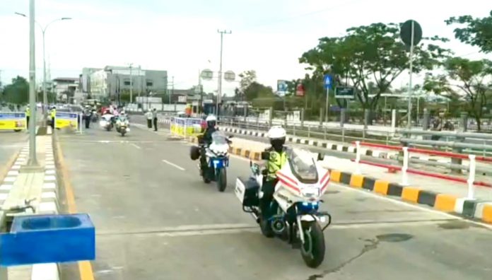 Ternyata touring rombongan moge tersebut berani melintas di Jambatan Alalak karena mendapat pengawalan petugas kepolisian.