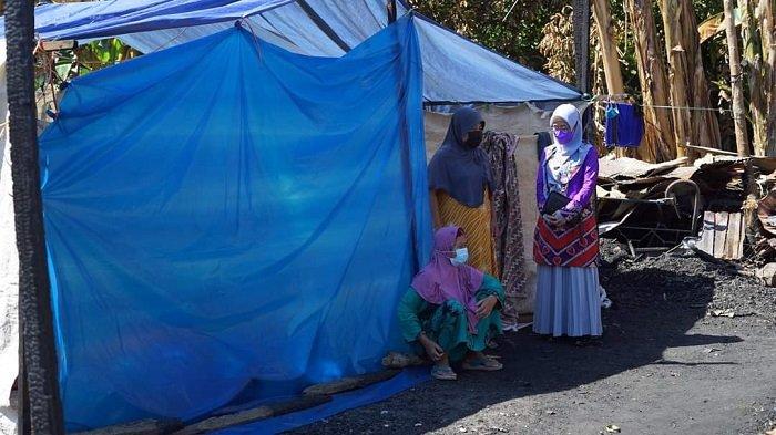Bupati HSS, Achmad Fikry bersama Wakil Bupati Syamsuri Arsyad yang datang melihat langsung kondisi korban kebakaran yang terpaksa tidur di dalam tenda terbuat dari terpal.