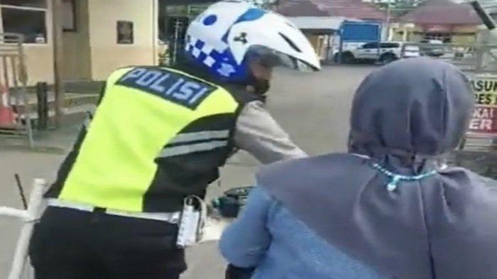 Menurutnya, anggota di lapangan terpaksa menghentikan laju kendaraan yang dikendarai emak-emak tersebut karena tidak memakai helm.
