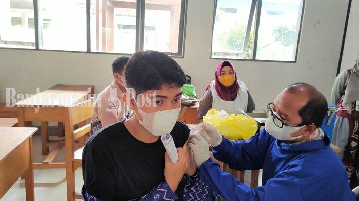 Vaksinasi juga digelar di SMAN 1 Kandangan, ada 300 siswa yang divaksin.