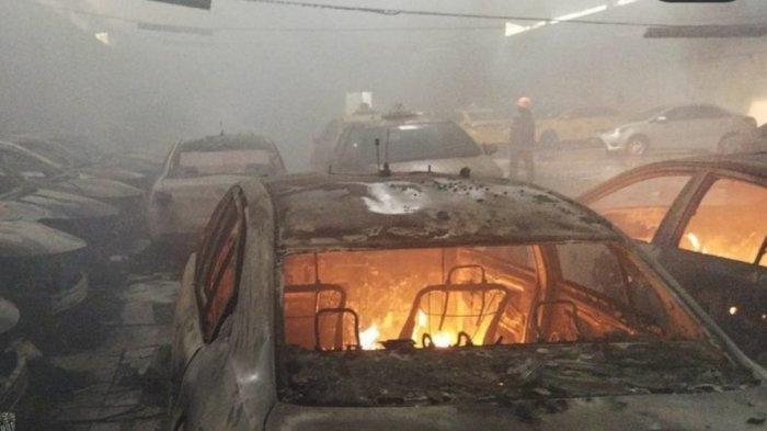 Tak sampai disitu, pelaku juga membakar ban bekas yang ada di dalam garasi tersebut sampai akhirnya api membesar dan menghanguskan sebagian bangunan dan 31 mobil di dalamnya.