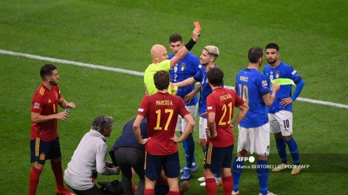 KALIMANTANLIVE.COM – Sejak menit 52 timnas Italia hanya bermain 10 pemain akhirnya harus mengakui kekalahannya dengan skor 1-2 atas Spanyol di San Siro dalam lanjutan Semifinal UEFA Nations League, Kamis (7/10/2021) dini hari.
