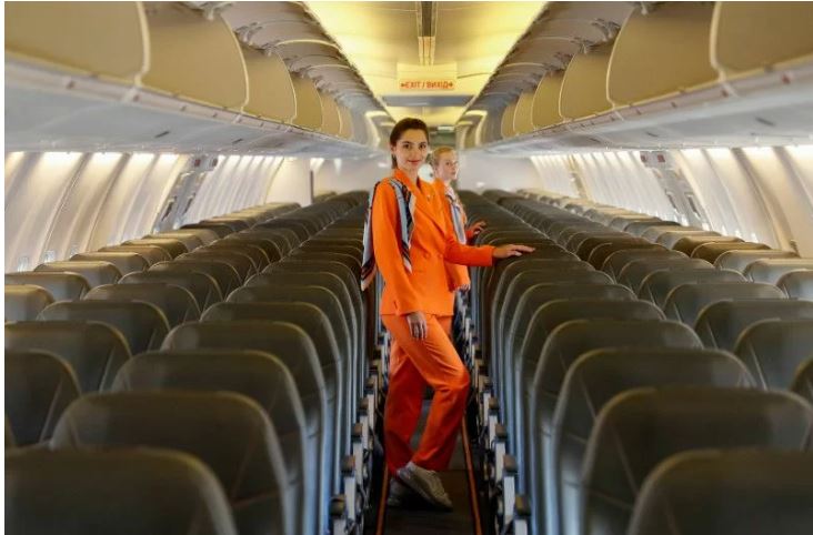 Seragam baru untuk pramugari kini lebih nyaman, sepatu Nike putih dan seragam oranye dengan celana panjang longgar dengan aksesoris syal sutra.