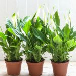 Peace lily memiliki bunga putih yang besar dan elegan serta daun hijau tua yang melimpah. Tanaman ini juga mudah dirawat.