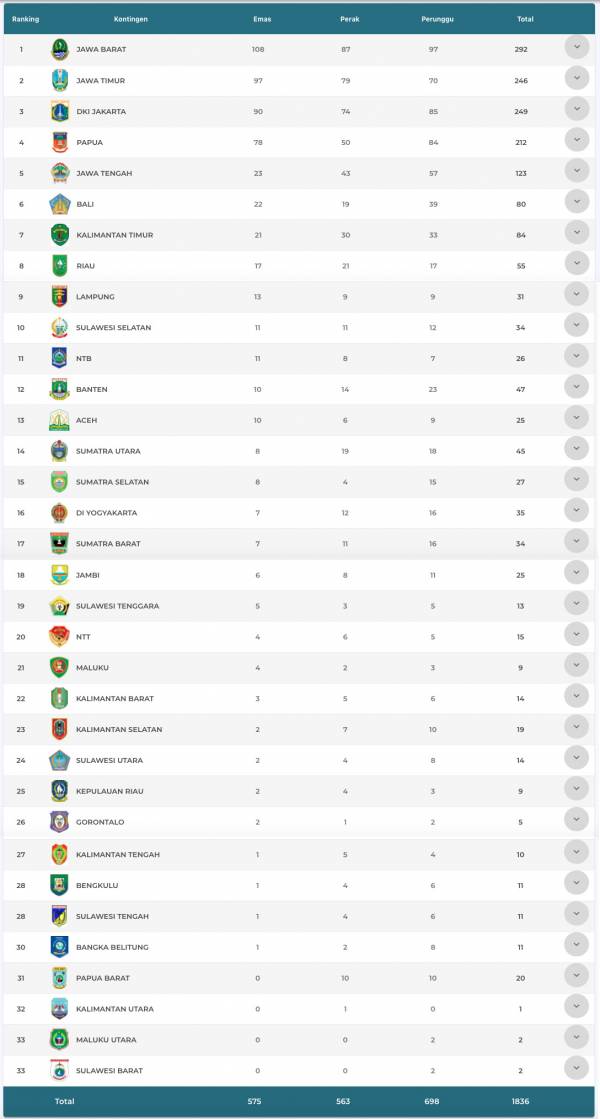 Berdasarkan data perolehan medali di PON XX Papua 2021, hingga Rabu (13/10/2021), Provnisi Kalimantan Selatan berada berada di posisi ke-23 dengan 2 emas, 7 perak dan 10 perunggu. Kalsel berada satu strip di bawah Kalimantan Barat.