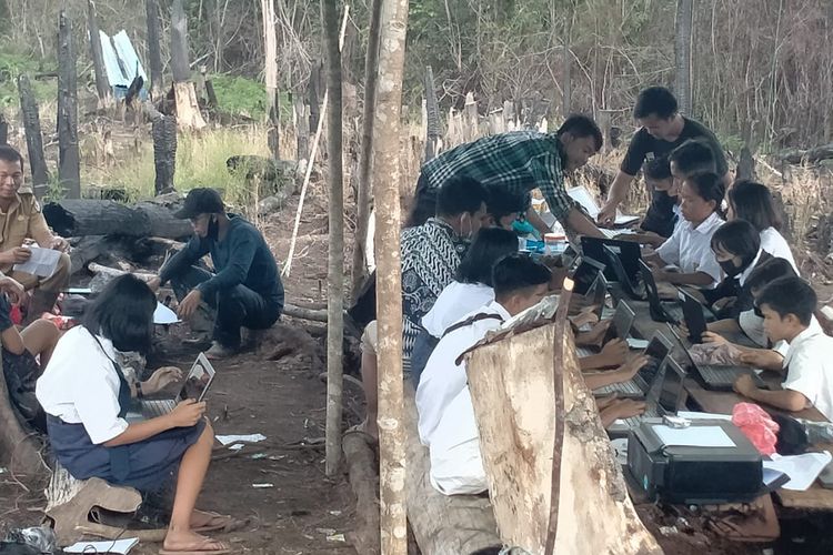 Demi mengikuti Asesmen Nasional Berbasis Komputer (ANBK), 45 pelajar SMP ini harus menginap di bukit.