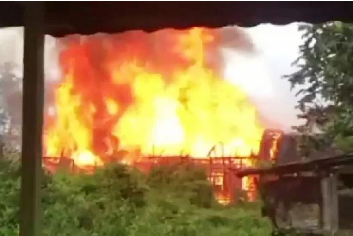 Tidak berapa lama, api yang membubung tinggi itu dengan cepat melalap bangunan rumah, termasuk bangunan budidaya sarang burung walet di bagian belakang.
