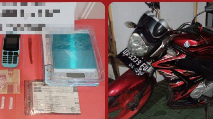 Tak hanya itu polisi juga berhasil mengamankan satu lembar plastik klip warna bening, satu serok yang terbuat dari sedotan warna bening, satu serok yang terbuat dari bekas sendok plastik warna merah, satu timbangan digital warna silver lengkap dengan kotaknya, satu unit handphone warna biru dengan menggunakan, satu dompet, yang tunai Rp 1,5 juta, satu unit sepeda motor merk warna merah dengan nomor polisi DA 3339 FU lengkap dengan STNK dan SKPD.
