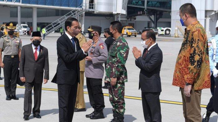 Nampak melepas keberangkatan Presiden di Bandara Internasional Soekarno-Hatta adalah Wakil Presiden Ma’ruf Amin, Menteri Sekretaris Negara Pratikno, Kapolri Jenderal Pol Listyo Sigit Prabowo, Kepala Staf TNI Angkatan Darat Jenderal TNI Andika Perkasa, dan Gubernur Banten Wahidin Halim.
