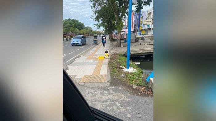 Lebih lengkapnya, pada unggahan Instagram di akun curhatan_mpus, Minggu (21/11/2021) kemarin, yang menunjukkan seorang anak kecil, perkiraan masih balita, duduk di trotoar Jalan Ahmad Yani km 2, di dekat pintu masuk Duta Mall.