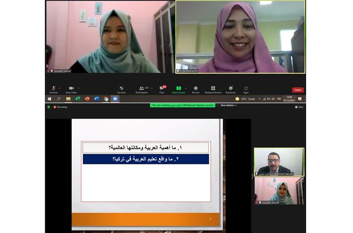Webiner Internasional bertemakan “Peluang dan Tantangan Bahasa Arab di Era Globalisasi” diselenggarakan melalui Aplikasi Zoom Meeting dan diikuti sekitar 300 peserta dari berbagai negara.