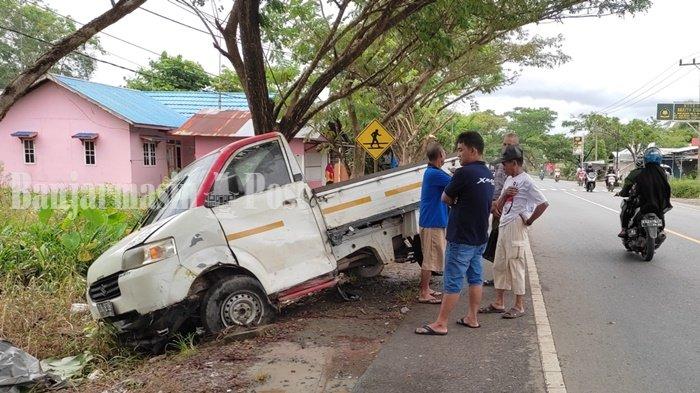 Peristiwa tersebut terjadi sekitar pukul 12.00 Wita, melibatkan pick up DA 8958 CX dan 2 sepeda motor matik masing-masing Suzuki Nex DA 6276 BEO dan Honda Scoopy DA 2627 BK.