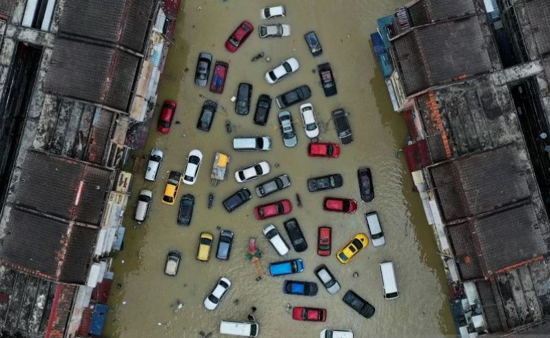 kalimantanlive.com – Kota atau Bandar Mentakab di Pahang, Malaysia terendam banjir.