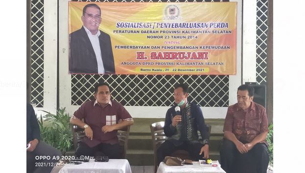 HANDIL BAKTI, Kalimantanlive.com – Ketua Komisi III Dewan Perwakilan Rakyat Daerah (DPRD) Kalsel H Sahrujani menggelar sosialisasikan dan penyebaran Perda Nomor 23 Tahun 2014 Tentang Pemberdayaan dan Pengembangan Kepemudaan di Handil Bakti, Batola, Selasa (21/12/2021).