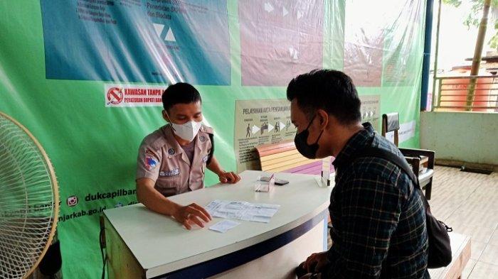 Kedatangan Ahmad Sabirin ke Kantor Disdukcapil Kabupaten Banjar, Jumat (24/12/2021) untuk menanyakan KTP elektronik penganti surat keterangan (Suket) yang dibuatkan sejak 2019 lalu.