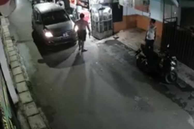Tak lama, seorang pria keluar dari mobil tersebut. Pengendara mobil itu diduga tampak memegang sepucuk senjata yang membuat warga melangkah mundur.