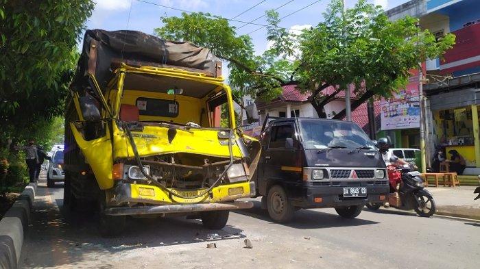 BANJARMASIN, KALIMANTANLIVE.COM – Gara-gara sopir truk mein handphone (Hp), tabrakan beruntun terjadi di Jalan Brigjend H Hasan Basri, Kecamatan Banjarmasin Utara, Kota Banjarmasin, Kalsel.