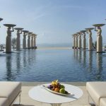 Salah satu fasilitas yang bisa dinikmati di The Edge adalah beach club Oneeighty yang berlokasi di tebing Uluwatu dan memiliki kolam renang kaca setinggi 160 meter dari samudera.