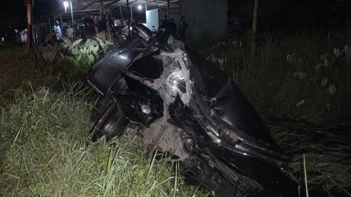 Tabrakan tidak terhindarkan, menyebabkan kedua mobil masuk ke dalam parit di Jalan Yos Sudarso XII.