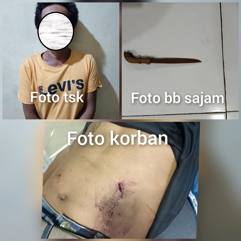 Dipaparkan Kapolsek Liang Anggang, AKP Yuda Kumoro Pardede melalui Kasi Humas Polsek Liang Anggang, Aiptu Kardi Gunadi, korban sekaligus pelapor ditusuk sebanyak dua kali di bagian perut kanan dan kiri menggunakan senjata tajam jenis pisau belati.
