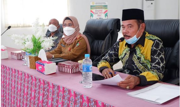 Ketua DPRD Kalsel H Supian HK saat melakukan Sosialisasi Perda Kalsel Nomor 06 tahun 2017 Tentang Penyelenggaran Penanggulangan Bencana di Kecamatan Danau Panggang, Kabupaten Hulu Sungai Utara (HSU), Kamis (13/01/2022). (Humas DPRD Kalsel).