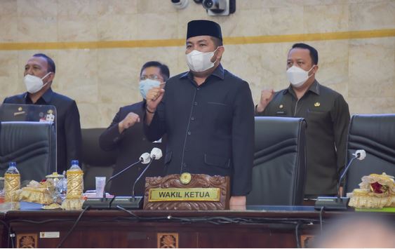 Wakil Ketua DPRD Kalsel M Syaripuddin saat mengikuti Rapat Paripurna Pengambilan Keputusan DPRD Kalsel atas Raperda Sistem Pemerintahan Berbasis Elektronik (SPBE), Rabu (12/1/2022). (Humas DPRD Kalsel)