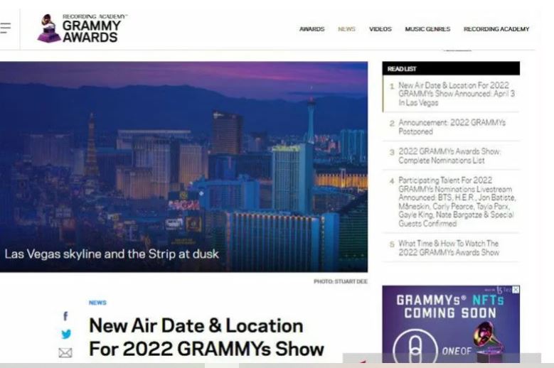 kalimantanlive.com – Penghargaan Grammy tahun ini dijadwalkan ulang menjadi 3 April di Las Vegas, kata Recording Academy dan CBS dalam pernyataan, Selasa waktu setempat.