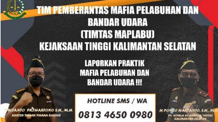 Plt Kepala Kejati Kalsel, H Ponco Hartanto mengatakan, hotline Satgas Pemberantasan Mafia Pelabuhan dan Bandara telah aktif sejak Senin (24/1/2022).