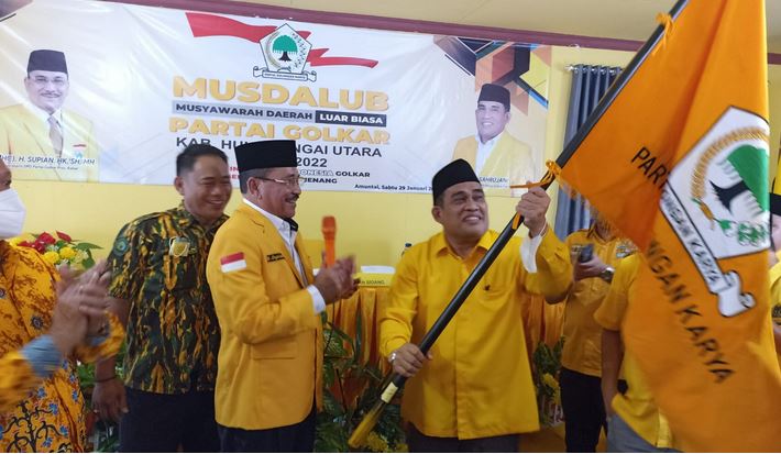 AMUNTAI, Kalimantanlive.com – H Sahrujani terpilih sebagai Ketua DPD Partai Golkar Kabupaten Hulu Sungai Utara (HSU) pada Musyawarah Daerah Luar Biasa (Musdalub) yang digelar di Amuntai, HSU, Sabtu (29/1/2022).