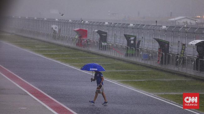 Cuaca buruk berpotensi pada hari terakhir atau penutup tes MotoGP Mandalika, Minggu (13/2). Situs BMKG mencatat, Kecamatan Prajut akan diguyur hujan sejak pagi hingga siang hari.