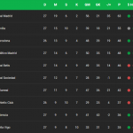 Adapun Real Betis yang sempat menempati peringkat ketiga, kini turun dua posisi ke urutan kelima. Mereka tertahan dengan raihan 46 poin dari 27 laga.