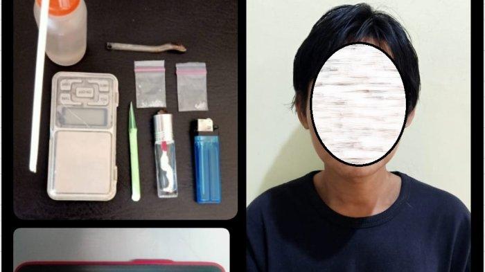 Adapun diantaranya, bong dari botol plastik yang di atasnya terdapat 2 buah sedotan, pipet kaca yang di dalamnya terdapat sisa sabu, timbangan digital, kompor dari botol kaca, sedotan plastik mancis Tokai biru dan Handphone OPPO hitam.