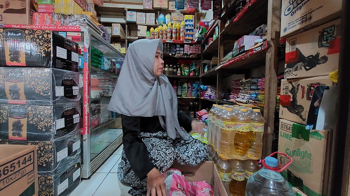 “Saya sekarang beli minyak goreng di agen dengan harga Rp 220.000 perbalnya. Sementara kalau beli di sales itu bisa dapat Rp 13.000 per liter. Hanya saja dibatasi, paling cuma dapat satu sampai dua bal kalau di sales,” ucap Normalina, pemilik Toko Riyadh.
