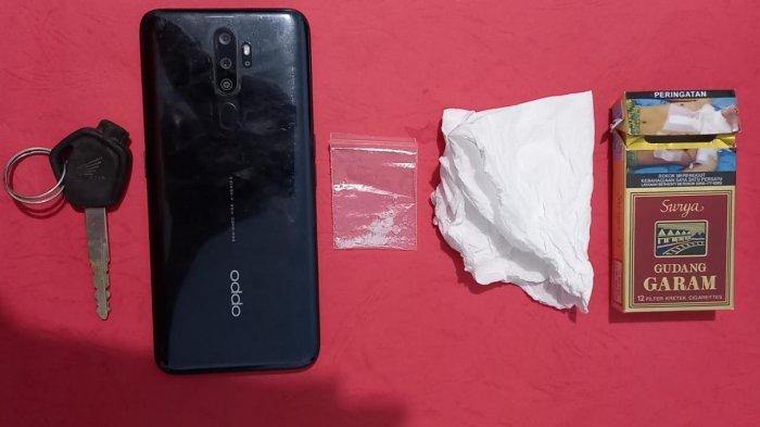 Selain sabu, barang bukti lainnya yang disita berupa satu lembar tissue warna putih, satu bungkus kotak rokok, satu buah handphone android warna hitam dan satu buah sepeda motor matic warna putih.