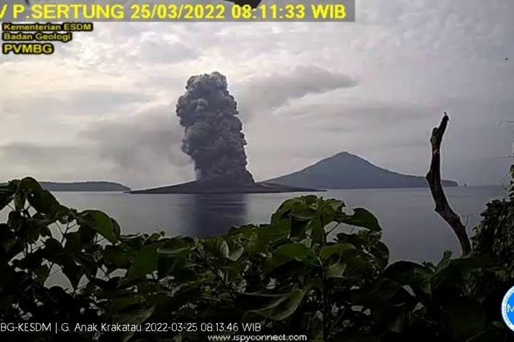 Terjadi erupsi gunung Anak Krakatau pada hari Jumat, 25 Maret 2022, pukul 05.26 WIB dengan tinggi kolom abu teramati ± 2000 m di atas puncak (± 2157 m di atas permukaan laut),” tulis magma.esdm.go.id.