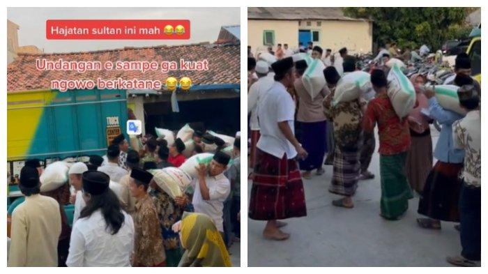 Hajatan yang digelar oleh H Aris Nugroho ini tak hanya memberikan buah tangan berupa beras tetapi juga uang saku ke tamu undangan.