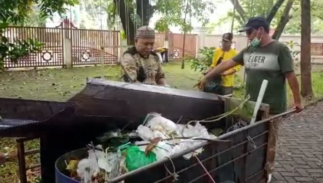 Sahbirin juga mendorong gerobak sampah sambil menyerukan akan pentingnya menjaga kebersihan terutama di sekitar masjid. “Ayo kita bersihkan sampah plastik yang ada ini, jangan sampai ada sampah yang tersisa, ayo bergerak,” ujarnya penuh semangat.