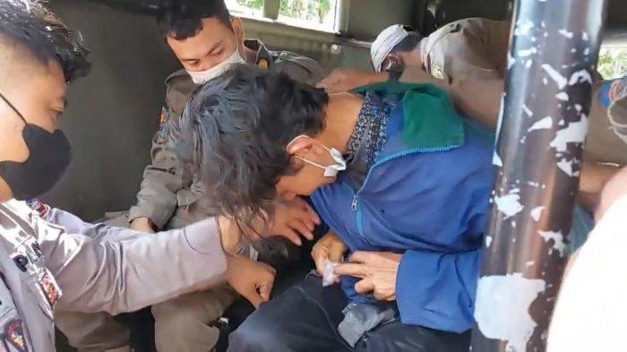 Beruntungnya aparat TNI/Polri dan Satpol PP sedang berpatroli di kawasan tersebut, pria tersebut langsung diamankan.