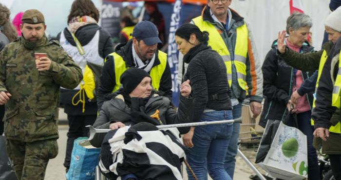 Warga kota di selatan Ukraina itu melakukan evakuasi dengan kendaraan mereka sendiri.