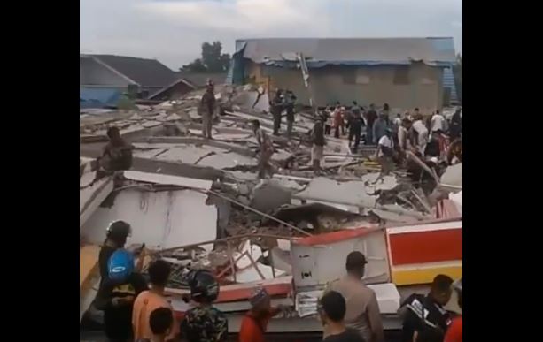 Pada video lain, warga berusaha memindahkan reruntuhan yang menimba sesosok korban.